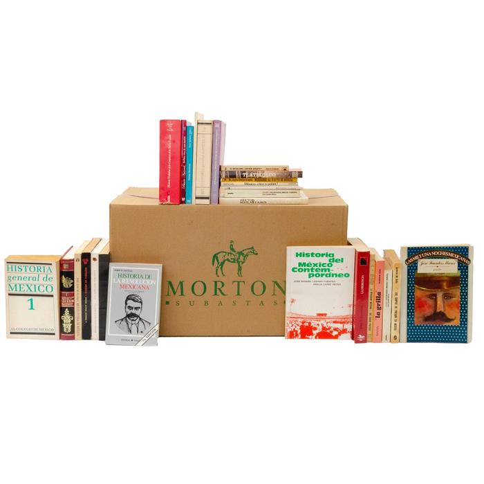 Subasta 1205T, Lote # 149 Libros sobre Historia de México. Títulos: -Silva Herzog, Jesús. Breve Historia de la Revolución Mexicana. -Fuentes Mares, José. Las Mil y una Noches Mexicanas. -Martínez, José Luis. Nezahualcóyotl. -Castillo, Heberto. Historia de la Revolución Mexicana. -Lozano Fuentes, José Manuel. Historia del México Contemporáneo. -Guerra Leal, Mario. Los sotanos de la política mexicana "la grilla": -Castañeda, Jorge G. La Herencia Arqueología de la Sucesión Presidencial en México. -Pensamiento y Acción de Francisco I. Madero. -La Revolución Mexicana sus causas políticas. -Aguilar Camin, Héctor. Saldos de la Revolución. -Ricardo Flores Magón el apostol cautivo. -Aguilar Camín, Héctor. A la sombra de la Revolución Mexicana. -Olloqui, Juan de. México Fuera de México. -Quirarte, Martín Visión Panoramica de la Historia de México. Encuadernados en rústica y pasta dura. Total de piezas: 65. Estimado $1,000-2,000