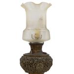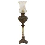 Decorado con elementos vegetales, naturales y florares, con fuste de ónix, para una luz con pantalla de vidrio