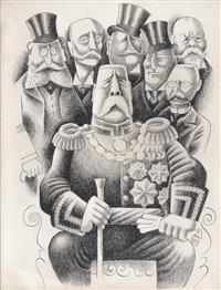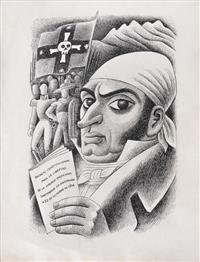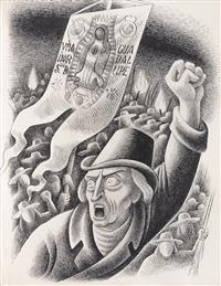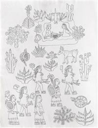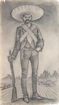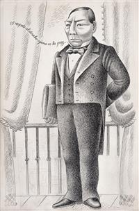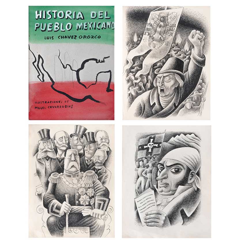 Subasta 1134, Lote # 30 MIGUEL COVARRUBIAS (Ciudad de México, 1904 - Ciudad de México, 1957) Ilustraciones para el libro Historia del Pueblo Mexicano a) Boceto para la portada del libro Historia del Pueblo Mexicano, b) Miguel Hidalgo con estandarte y huestes indígenas, c) Benito Juárez, d) José María Morelos y Pavón con sus generales, e) Porfirio Díaz en 1908 rodeado de Científicos: Rosendo Pineda, José Castelló, Ramón Corral, Pimentel y Fagoage, Limantour y Justo Sierra, f) Sin título (La Conquista), g) Virrey Antonio María de Bucareli y Urzúa, h) Agustín I Emperador, i) Santa Anna, j) Virrey Antonio de Mendoza, k) Virrey Juan Vicente de Güemez, l) Sin título (Escena prehispánica), m) Sistema de Castas, n) Álvaro Obregón, o) Melchor Ocampo, p) Fray Bartolomé de las Casas, q) Sin título (Porfirio Díaz), r) Sin título (Escena prehispánica II), s) Sin título (Línea de sucesión de Tlatoanis), t) Sistema de Castas II, u) Sistema de Castas III, doble vista, v) Emiliano Zapata, w) Documentos relacionados con la investigación Dos firmados Tinta, acuarela y lápiz de grafito sobre papel Piezas: 23 Este lote incluye documentos relacionados con la investigación realizada para el libro "Historia del Pueblo Mexicano" de Luis Chávez Orozco en 1940, proyecto editorial que no se concretó. Agradecemos a Adriana Williams y a Anahí Luna por la verificación de autenticidad de esta obra, septiembre de 2023. Procedencia: perteneció a la colección de Luis Chavez Orozco, México; colección de General Tomás Sánchez Hernández, México y Jorge Vallejo, México. Al tratarse de bocetos presentan detalles de conservación normales por el uso. Estas obras han sido solicitadas para ser exhibidas en "Miguel Covarrubias. Un arte sin fronteras", muestra organizada por Fomento Cultural Citibanamex con la curaduría de Anahí Luna y Sergio Raúl Arroyo, que será presentada en 2025 en el Palacio de Iturbide, Centro Histórico, en Ciudad de México. Miguel Covarrubias publicó diversos textos, tanto individuales como en colaboración, los cuales estuvieron inclinados a temas sociales e históricos. En 1930 fue reconocido con una beca por parte de la Fundación Guggenheim, la cual le permitió realizar una investigación en la isla de Bali, Indonesia, que resultó en un libro donde se reunieron observaciones e ilustraciones en las que convergen de manera exquisita el carácter científico y artístico. Su perfil de investigador lo llevó a participar en excavaciones arqueológicas, entre las que destacan las realizadas al sur de Veracruz donde se encontraron asentamientos Olmecas. Lo anterior, aunado a otras experiencias se vio reflejado en las obras artísticas que realizó a lo largo de su vida, como se observa en los murales plasmados en el Hotel del Prado (1947) o en el actual Museo de Artes Populares (1951). En los años cincuenta comenzó uno de sus proyectos más ambiciosos, el libro cuyas páginas primigenias apreciamos en este lote, en las que se ve reflejado a través de ilustraciones de la historia mexicana y sus personajes clave, plasmados a la manera de Miguel Covarrubias con cierta picardía sin dejar de lado la seriedad que el trabajo pretendía. "Fue Miguel Covarrubias quien, con la sensibilidad que poseía, comenzó a divulgar y valorizar algunos de los objetos elaborados por nuestros grupos indígenas que habían sido, si no menospreciados, al menos muy poco tenidos en cuenta por los arqueólogos, ya que estos veían en las obras de las artes prehispánicas el punto de vista de su importancia utilitaria; en cambio Miguel Covarrubias comenzó a mostrar en ellos el gusto estético, con lo que realzó en forma única el conjunto de características que hacen sobresalir la obra de arte de nuestras culturas autóctonas". Eusebio Dávalos Hurtado. Fuentes consultadas: -RÍOS SÁNCHEZ, Miguel Ángel. Miguel Covarrubias (1904-1955) y la configuración de la estética Olmeca. España. ÉNDOXA: Series Filosóficas. Universidad Nacional de Educación a Distancia, no. 28, 2021, pp. 165-187. -RUBÍN DE LA BORBOLLA, Daniel F. Miguel Covarrubias 1905-1957. Reino Unido. American Antiquity, Cambridge University Press, no. 23, julio de 1957, pp. 63-65. Medidas variables Estimado $4,500,000-5,500,000