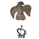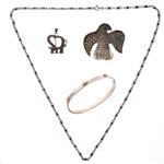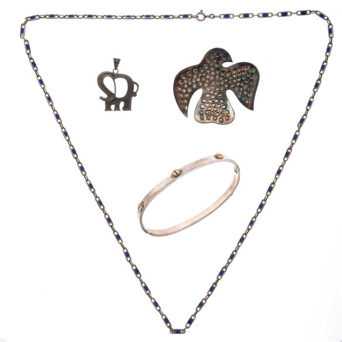 Collar, pulsera rigida, prendedor y pendiente en plata .925.