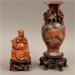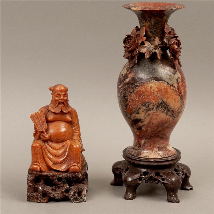 Talla en piedra jabonosa, consta de: anciano y jarrón
