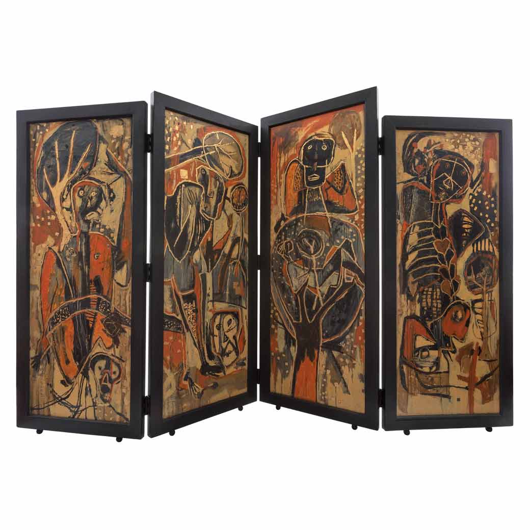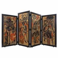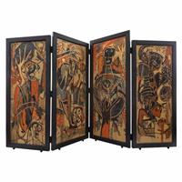 Óleo y hoja de oro sobre madera, biombo unido por bisagras, doble vista