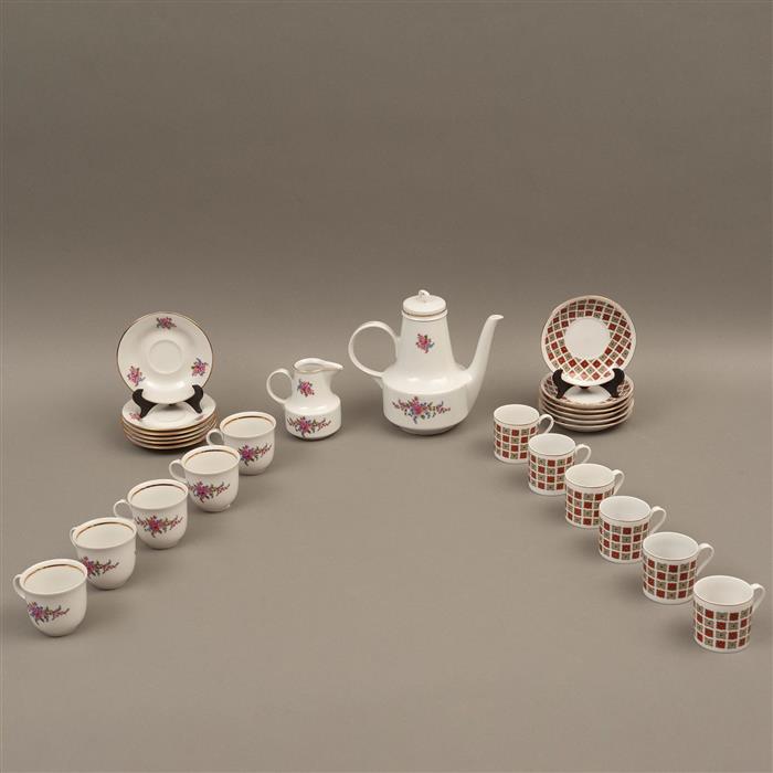a) 5 tazas, 6 platos terno, tetera y cremera