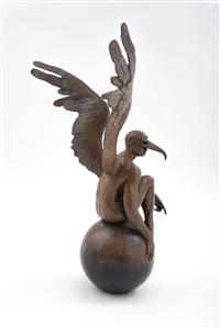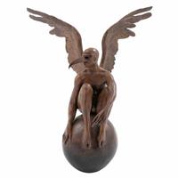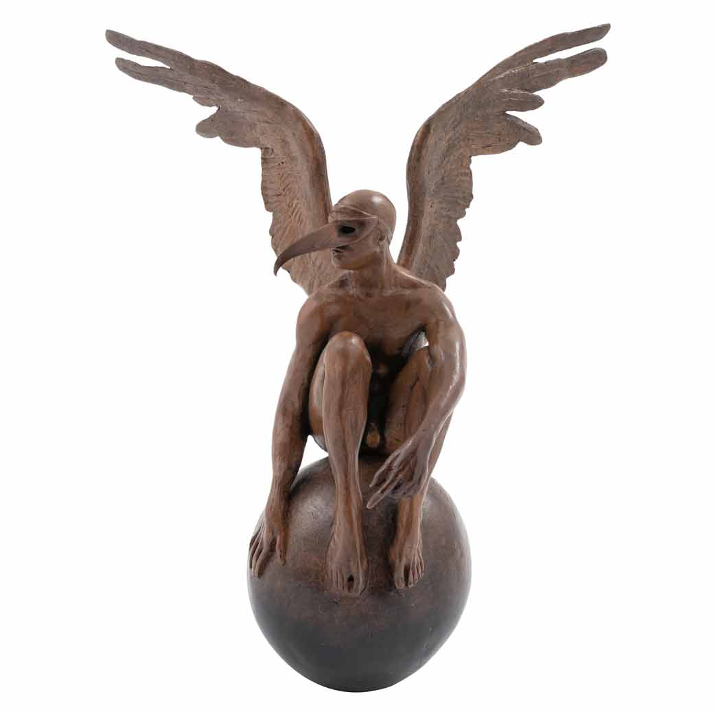 Subasta 1134, Lote # 127 JORGE MARÍN (Uruapan, Michoacán, 1963 - ) El duomo con alas, 2003 Firmada Escultura en bronce 9 / 20 Con certificado de autenticidad del artista. Agradecemos al Maestro Jorge Marín por la verificación de autenticidad de esta obra, agosto de 2023. "El bronce es un metal mestizo, producto de la aleación de cobre y estaño. No es gratuito que Jorge Marín lo tome, lo trabaje como metal de nuestra raza, de nuestro país. Al bronce, Marín le da alas: Alas de ángel. Sus ángeles de bronce no escapan a la tradición religiosa. Aparecen ángeles en todas las creencias. Y hombres, casi siempre jóvenes, unas veces viejos, en un alado paisaje angélico. La creación de Jorge Marín obedece no a lo divino, sino humano, 'demasiado humano'". Carlos Fuentes. Fuente consultada: sitio oficial del artista www.jorgemarin.com.mx 35 x 33 x 20 cm Estimado $180,000-250,000