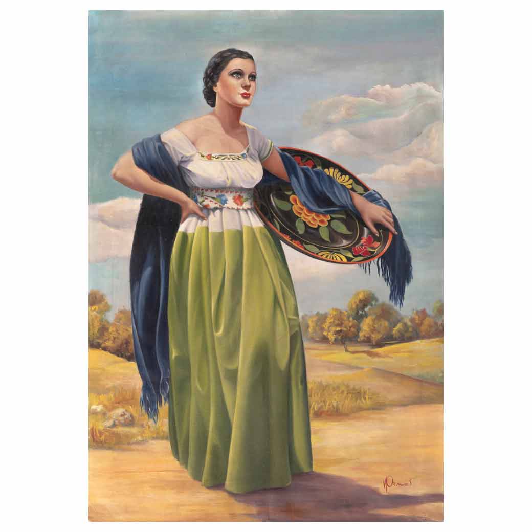 VICENTE MORALES (México) India michoacana Firmado Óleo sobre tela Presenta detalles de conservación y restauración. 108 x 75 cmEstimado $160,000-200,000