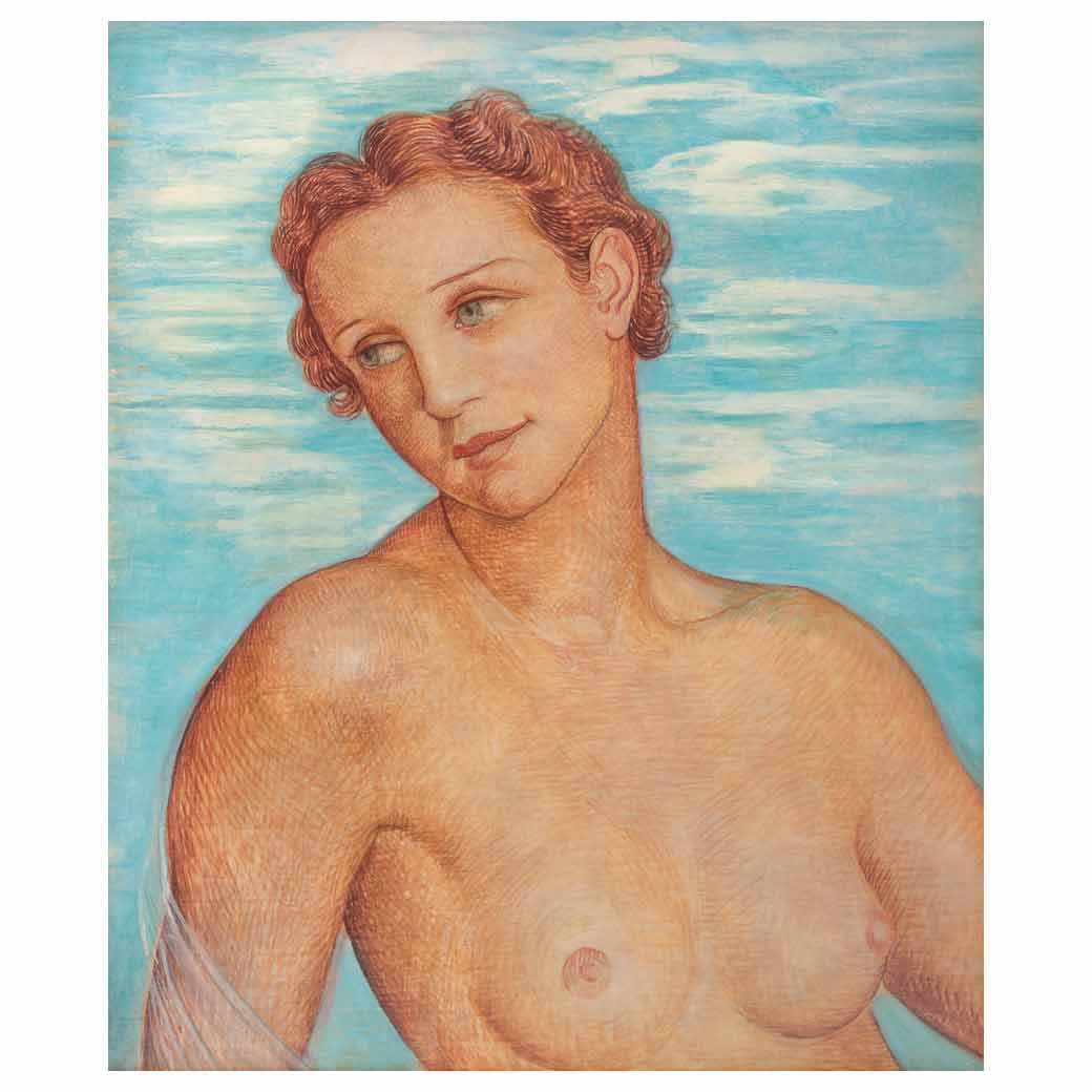 Subasta 1134, Lote # 35 ÁNGEL ZÁRRAGA (Victoria de Durango, 1886 - Ciudad de México, 1946) Primavera, ca. 1941 Sin firma Óleo y temple sobre tela Con constancia de opinión de autenticidad de María Luisa Novelo Quintana, septiembre de 2023. Con etiqueta del Museo de Arte Moderno de la Ciudad de México y Colección Andrés Blaisten. Presenta detalles de conservación. A lo largo de la producción de Ángel Zárraga apreciamos un estilo cambiante derivado de las múltiples influencias recabadas en su carrera, entre ellas están el cubismo, el simbolismo y el realismo, por destacar algunas que terminaron por constituir un lenguaje propio después de una larga vida de experimentación. Desde su juventud convivió con personajes clave de la escena cultural de la época, fue alumno de Justo Sierra, Amado Nervo y Julio Ruelas, además de ser amigo cercano de Jaime Torres Bodet. Dicho círculo social compaginó de excelente manera con sus intereses personales como lo era la escritura en prosa y el dibujo de caricaturas y retratos. Entre 1902 y 1903 fue motivado por Luis G. Urbina, José Juan Tablada y Amado Nervo para que publicara sus primeros versos en la "Revista Moderna". A su ingresó a la Academia de San Carlos tuvo como compañeros a José Clemente Orozco, Diego Rivera, Roberto Montenegro y Saturnino Herrán, mientras que el equipo docente estaba conformado por maestros como José María Velasco y Santiago Rebull. Fue gracias a este último que se interesó por el clasicismo francés de Jacques-Louis David y Jean-Dominique Ingres, poniendo especial interés en la búsqueda de la perfección de la forma y del equilibrio compositivo, el estudio constante del cuerpo desnudo y la prevalencia de la figura humana como objeto precedente de representación. Estos principios se convirtieron para él en una promesa inquebrantable con su obra, mismos que le sirvieron para contrarrestar las tentaciones de la vanguardia. Se impregnó también del simbolismo de Julio Ruelas, de quien aprendió no sólo la disciplina dibujística, sino también la visión moderna del compromiso artístico con la imaginación desbordada, la libertad para abordar iconografías clásicas y de la exploración del erotismo. Estableció su vida en el viejo continente durante casi tres décadas, durante su estancia allí formó parte de los discípulos de grandes exponentes como Joaquín Sorolla e Ignacio Zuloaga, generó amistades con personajes importantes del momento y participó en proyectos y exposiciones con proyección mundial, recolectando grandes experiencias que marcaron su carrera como una de las más prolíficas de su momento. Tras el estallido de la Segunda Guerra Mundial y el avance de las tropas alemanas, se vio obligado a regresar definitivamente a México en 1940. A su llegada a la capital fue buscado por diversas instancias y personalidades de la cultura de nuestro país para continuar con su exitosa carrera de este lado del Atlántico. Fuentes consultadas: -ECHEGARAY, Miguel Ángel et al. Ángel Zárraga. Primer realista mexicano del siglo XX. México. Gobierno del estado de Durango, 2006, pp. 9, 26-29 y 40. -GREET, Michele et al. Ángel Zárraga. El sentido de la creación. México. CONACULTA, Museo del Palacio de Bellas Artes, Fundación Mary Street Jenkins, 2014, pp. 77-81.-NOVELO, María Luisa et al. Zárraga. México. Américo Arte Editores, Grupo Financiero Bital, 1997, pág. 26. 64 x 56.5 cm Estimado $3,700,000-5,500,000