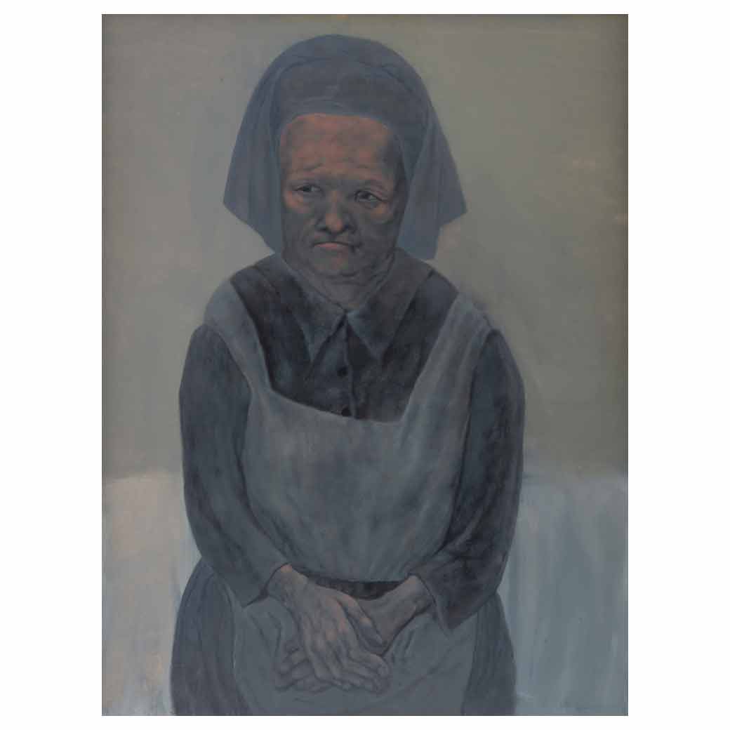 Subasta 1134, Lote # 68 RAFAEL CORONEL (Zacatecas, Zacatecas, 1931 - Cuernavaca, Morelos, 2019) Gudelia Firmado y fechado 61 México Óleo sobre masonite Procedencia: adquirido en Forsythe Gallery, Michigan, EE. UU., 1962. Con fragmento de etiqueta de Forsythe Gallery. Presenta detalles de conservación. "Coronel declaró que si alguna vez hubiera formado parte de algún grupo, hubiera sido con Francisco Corzas por afinidad. Compartió con él fascinación por Rembrandt y la pintura flamenca, y sobre todo, con aquello que no parecía pertenecer a su coetaneidad o el medio cultural mexicano. Sin embargo, pertenecían al mundo evasor de una narrativa poética que era seductora por su nivel técnico (el cual no podía apreciarse a través del abstraccionismo), por el estímulo de su sensualidad oscura, extremo pesimismo y por último, como un arte que miraba hacia el humanismo cuando sus sustitutos materiales predominaban". Luis Carlos Emerich. Fuente consultada: CORONEL RIVERA, Juan Rafael, et al. Retrofuture. Rafael Coronel. México. INBA - CONACULTA - Museo del Palacio de Bellas Artes. 2011, pág. 26. 102 x 76 cm Estimado $400,000-500,000