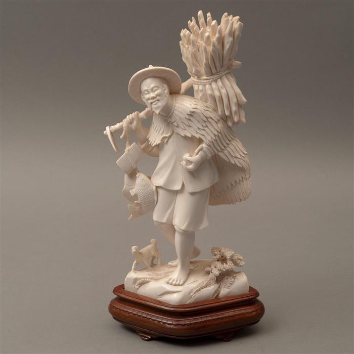 Talla en marfil; con base de madera