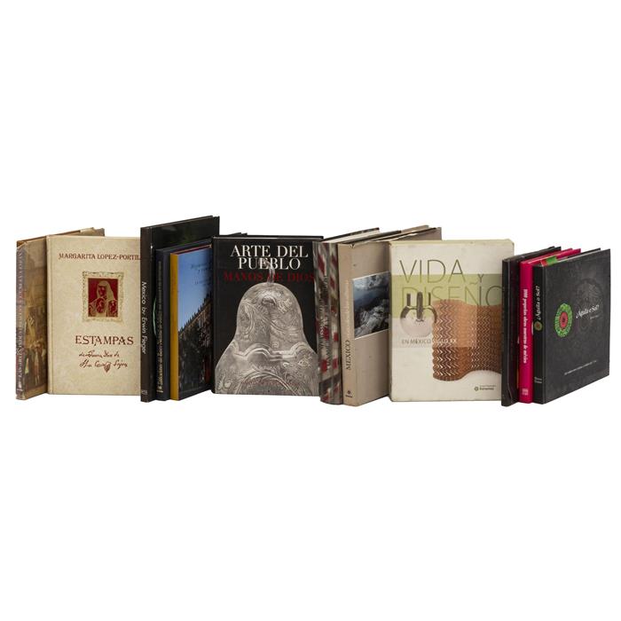 Subasta 1205T, Lote # 136 Libros sobre Ciudad de México. Títulos: -Homps - Brousse, Helene. 1000 pequeñas obras maestras de México. México: 2006. 207 p. -Stoopen, María. El universo de la cocina mexicana. México: Fomento Cultural Banamex, 1988. 121 p. -México Visto desde las Alturas. México: Fomento Cultural Banamex, 1987. 323 p. -Holtz, Débora / Monsiváis, Carlos. Imágenes de la Tradición Viva. México: Fondo de Cultura Económica, 2006. 671 p. -Arte del Pueblo Manos de Dios. Museo de Arte Popular. México: 2004. Primera edición. Entre otros. Total de piezas: 12. Estimado $1,500-3,000