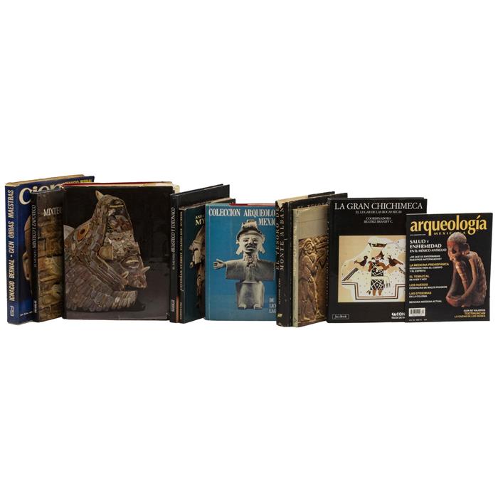 Subasta 1205T, Lote # 143 Libros sobre Civilizaciones. Títulos: -Braniff, Beatriz. La Gran Chichimeca el lugar de las Rocas. México: CONACULTA, 2001. 309 p. -Oates, David. The Rise of Civilization. Phaidon, 1976. 151 p. -Caso, Alfonso. El Tesoro de Monte Albán. México: INAH, 1969. 405 p. -Bernal, Ignacio. Colección Arqueologica Mexicana. México: 1971. XXI + ilustraciones. Edición de 1,000 ejemplares. -Franco y González Salas, Maria Teresa. El Mundo Huasteco y Totonaco. México: Editorial Jiguero, 1993. 195 p. -Bernal, Ignacio. Cien Obras Mestras del Museo Nacional de Antropología. México: José Bolea Editor, 1969. 25 p. + ilustraciones + XXX. Entre otros. Total de piezas: 10. Estimado $2,000-3,000