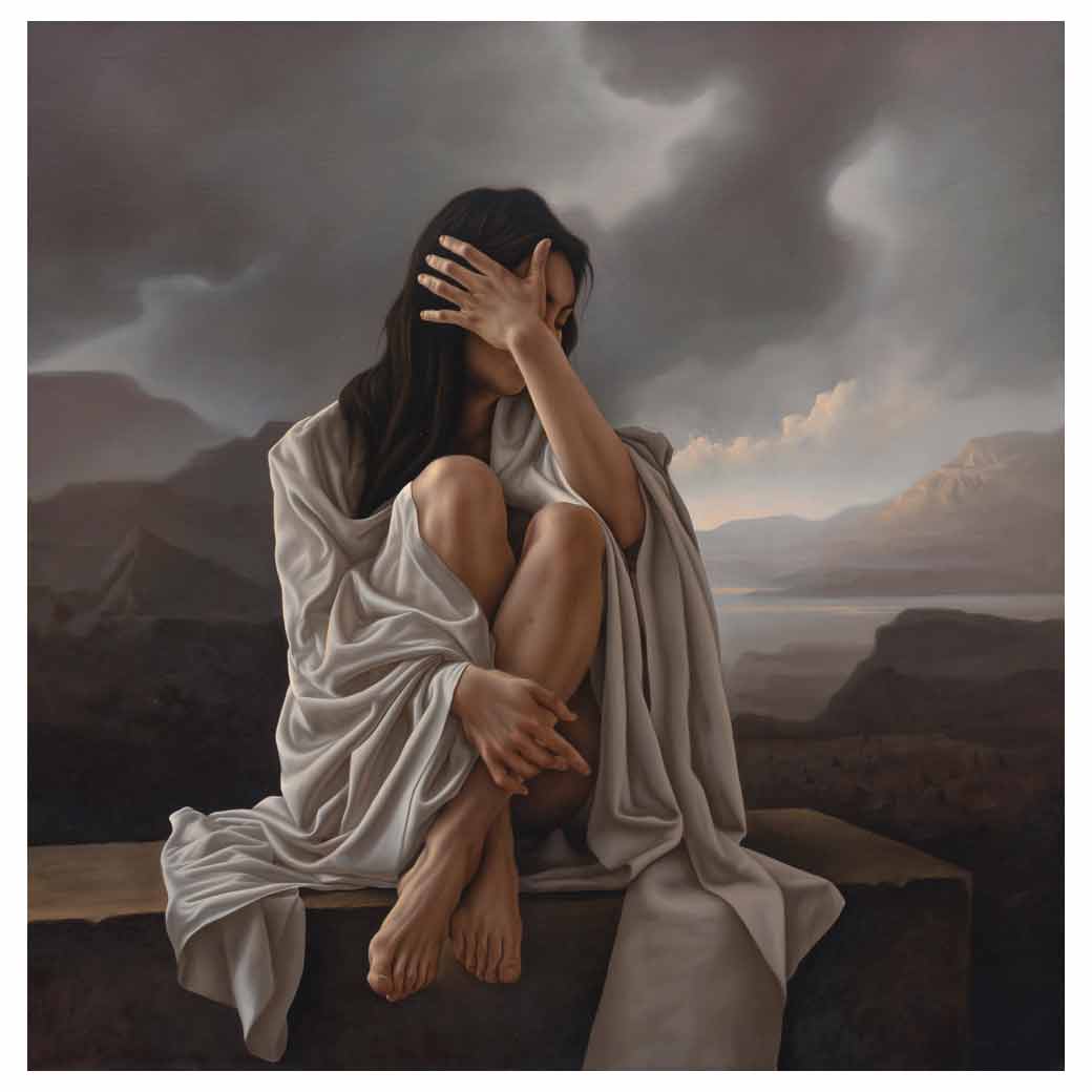 Subasta 1134, Lote # 136 SANTIAGO CARBONELL (Quito, Ecuador, 1960 - ) Figura tocada por la fragilidad de una nube Firmado Óleo sobre tela Con certificados de autenticidad de Galería Praxis, firmado por el artista, junio de 1999 y de Interart, marzo de 2002. En su obra de tinte hiperrealista está siempre presente la figura humana, el retrato con gestos, miradas y manos. El lienzo enmarca a los personajes en determinadas actitudes y poses, en una atmósfera teatral y escenarios que forman parte de su iconografía: pinturas de gran formato, recursos luminosos que recuerdan la época tenebrista, con sus protagonistas ataviados en capas o túnicas acorde a ese periodo. "Esta es una propuesta que nos da la oportunidad de encontrarnos con un hiperrealismo muy particular con sus guiños al pasado y una lucidez y claridad en cada una de las obras". Ricardo Marcos. Fuentes consultadas: NAVARRO, Adriana. Carbonell: la revuelta de la tradición. México. La gaceta. Universidad de Guadalajara, 17 de septiembre de 2007, pág. 5, sitio oficial de Galería Ginocchio www.ginocchio.gallery y sitio oficial de Consejo para la Cultura y las Artes de Nuevo León www.conarte.org.mx 110 x 110 cm Estimado $500,000-600,000
