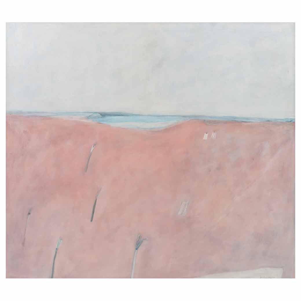 Subasta 1134, Lote # 3 JOY LAVILLE (Wight, Inglaterra, 1923 - Cuernavaca, Morelos, 2018) Deck chairs and orange beach Firmado y fechado 74 Óleo sobre tela Con certificado de autenticidad de Galería de Arte Mexicano, agosto de 2023. Agradecemos al Dr. Salomon Grimberg por la revisión de esta obra, septiembre de 2023. Con etiqueta de Galería de Arte Mexicano. Presenta mínimos detalles de conservación. El lenguaje que Joy Laville manejó en su obra es identificable por el público actual, observamos elementos que van más allá del neofigurativismo u otra corriente coetánea a la artista, identificamos vivencias personales, por lo que autores como Lelia Driben o Salomon Grimberg hacen énfasis en los recuerdos como recurso de su inspiración. De esta manera, comprendemos las composiciones plasmadas como testimonio de una vida de cambios y adaptaciones, desde múltiples migraciones y memorias de hogares lejanos, hasta amores arrebatados por el destino. "Joy Laville no es abstracta, geométrica o realista; su pintura está hecha de insinuaciones cuyo enlace más nítido son las siluetas y huellas que habitan en la memoria, en sus múltiples capas y recovecos, allí donde pasado y presente se funden en un tiempo móvil: el que subyace en el espacio atemporal, fijo, de los objetos y figuras del cuadro". Lelia Driben. Fuentes consultadas: GRIMBERG, Salomon. Landfalls and Departures: Images of Mourning in Joy Laville's Art. Estados Unidos. Woman's Art Journal, otoño, 1989 - invierno 1990, vol. 10, no. 2, pp. 3-6 y DRIBEN, Lelia. Joy Laville: pintora de la levedad. México. Letras libres, diciembre de 2003, pp. 117 y 118. 140 x 160 cm Estimado $1,200,000-2,000,000
