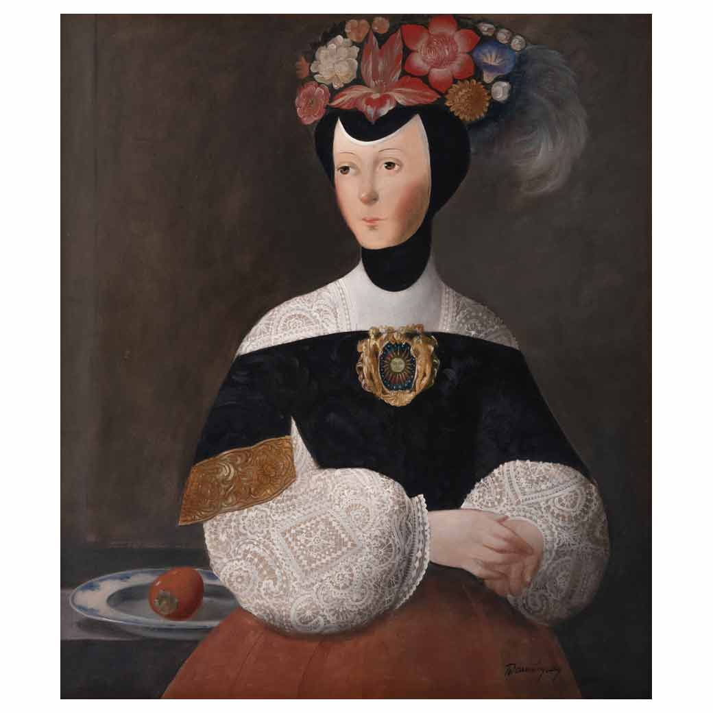 Subasta 1134, Lote # 71 BENJAMÍN DOMÍNGUEZ (Ciudad Juárez, Chihuahua, 1942 - Ciudad de México, 2016) Monja coronada Firmado Óleo sobre tela Presenta desprendimiento de capa pictórica. Benjamín Domínguez, originario de Chihuahua, migró a la Ciudad de México a la edad de 20 años para estudiar en la Academia de San Carlos. Se le considera heredero de los conocimientos de Luis Nishizawa, principalmente en el uso de diversas técnicas y materiales, formando así parte de su vida los aceites y bálsamos para su quehacer artístico. Su entrada al equipo de museografía del Museo Nacional del Virreinato en Tepotzotlán fue determinante para su producción artística, ya que el contacto con obras de arte colonial, marfiles, estofados y porcelanas de oriente definieron su estilo personal. Los teóricos describen su obra como expresión de dolor, placer y sacrificio evadiendo el exceso, tal como se observa en las monjas coronadas que tanto caracterizaron su trabajo, las cuales incluyen los típicos elementos iconográficos del periodo virreinal en los que se conmemoran momentos decisivos de la vida de las eclesiásticas, cuando realizaban sus votos perpetuos y su muerte. Fuentes consultadas: LARA ELIZONDO, Lupina. Resumen. Pintores y pintura mexicana. México. Promoción de Arte Mexicano, julio-agosto, 1999, pp. 19-30, MACMASTERS, Merry. "Muere Benjamín Domínguez, el pintor del dolor y el gozo". México. La Jornada, sección Cultura, 11 de julio de 2016 y SAAVEDRA, Mario. "El universo plástico de Benjamín Domínguez". México. Biblioteca Babab, No. 34, 2009. 80 x 70 cm Estimado $150,000-250,000