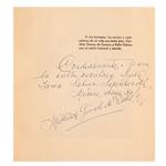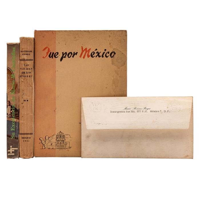 Subasta 0051L, Lote # 221 Colección de Obras Dedicadas por los Autores de las mismas a Irma Sabina Sepúlveda. a) Cantinflas (Mario Moreno). Su Excelencia. México: Finisterre, 1970. 8o. marquilla, 286 p. Primera Novela del autor. Encuadernado en rústica. Incluye una carta escrita a máquina de Mario Moreno Reyes, dirigida a Irma Sabina Sepúlveda. En la que le agradece el envió de dos de sus libros y en reciprocidad él le envía su primera novela. Piezas: 2. b) Barragán, Manuel L. Fue Por México. México: Sistemas y Servicios Técnicos, 1968. 8o. marquilla, 5 h. + 92 p. + 4 h. Fragmentos de una síntesis autobiográfica. Edición Privada. Pasta anterior manchada. Encuadernado en rústica. c) Gómez, Mathilde. Las Viudas de los Dioses. México: A. del Bosque - Impresor, 1940. 8o. marquilla, 3 h. + 272 p. Retrato de la autora y 15 láminas, en sepia. Sin refinar. Encuadernado en rústica. Total de piezas: 4. Estimado $9,000-11,000