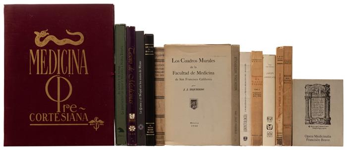 Varios tamaños. Algunos títulos: Hospitales de la Nueva España (Tomo II); Raudon Cirujano Poblano de 1810; La Expedición de Sessé y Mociño a Nueva España; Historia Natural o Jardín Americano; La Grana y el Nopal en los Texto de Alzate; Opera Medicinalia de Francisco Bravo (facsimilar); Los Viajes de Don Francisco Xavier de Balmis; Tesoro de Medicinas para Diversas Enfermedades dispuesto, por el Venerable Varón Gregorio López (facsimilar); Florilegio Médico Mexicano; El Palacio de la Escuela de Medicina; El Hospital Juárez; La Ciencia Médica de los Aztecas; México en la Cultura Médica; Medicina Precortesiana; entre otros. Encuadernados en rústica y pasta dura.