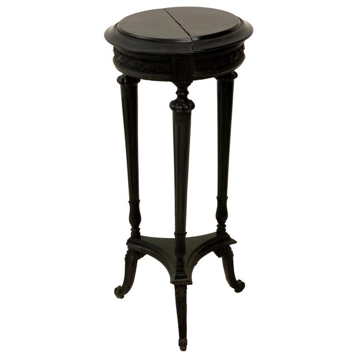 Cuenta con fustes compuestos, entrepaños y Soportes tipo cabriolé.