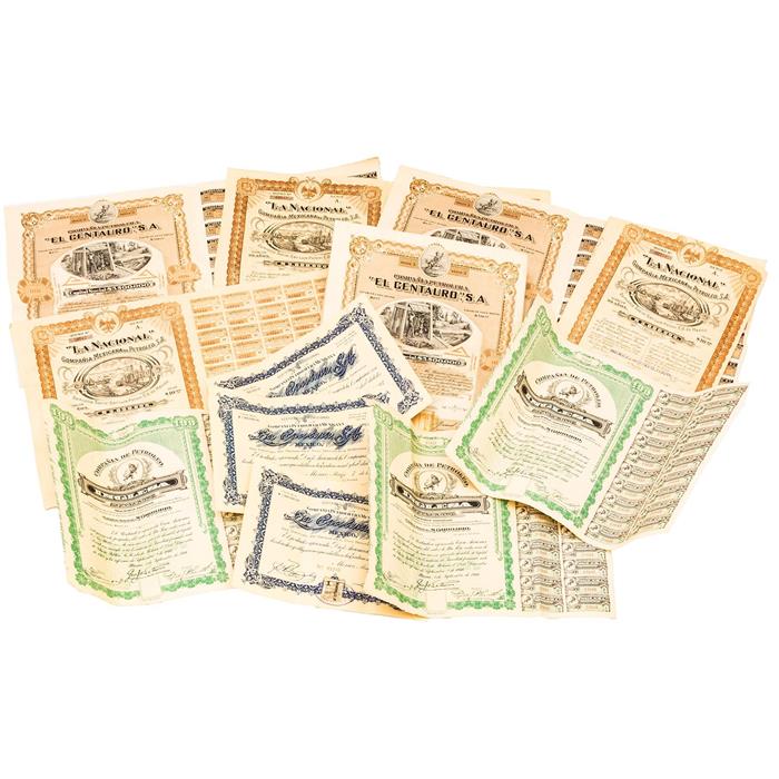 -Compañía Petrolifera Mexicana. "La Carolina". Números 15230, 15233, 15235. Capital Social $1.000,000.00. México, 1914. Piezas: 3.