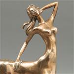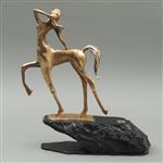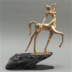Bronce, acabado dorado; base de mármol negro (lascaduras) y soporte metálico