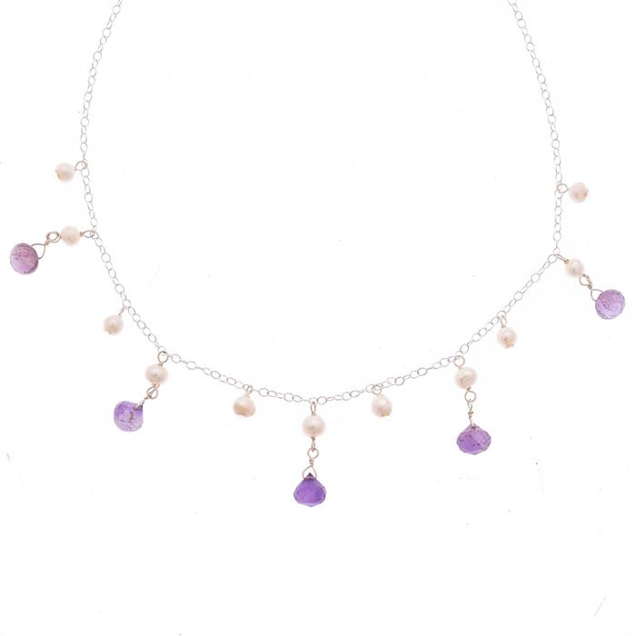 Subasta 1228T, Lote # 338 Collar con amatistas y perlas en plata .925. Peso: 4.5 g. Estimado $1,200-2,000