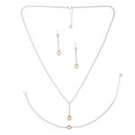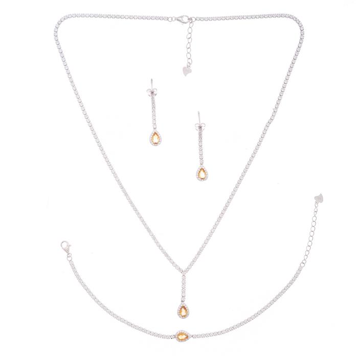 Collar, par de aretes y pulsera con citrinas y circonias en plata .925.