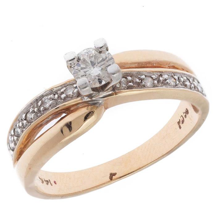Subasta 1228T, Lote # 362 Anillo con diamantes en oro amarillo 14k 1 diamante central de ~ 0.18 ct. 10 diamantes corte 8 x 8. Talla: 5 1/2. Peso. 3.0 g. Estimado $3,500-5,000