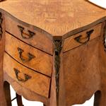 Cuenta con tres cajones y repisa inferior. Con soportes tipo cabriolé