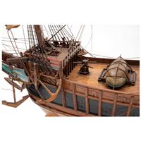 Elaborado a escala en madera policromada, metal y textil con base de madera