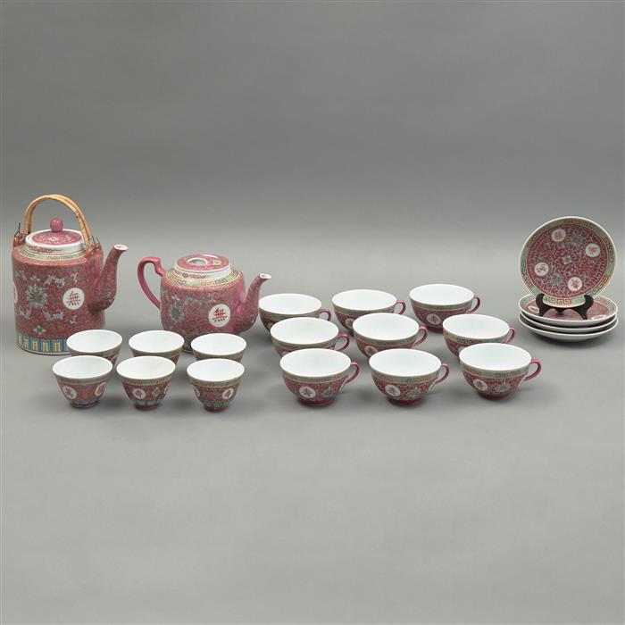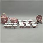 Consta de 9 tazas, 6 tazones, 4 platos terno, tetera y cafetera