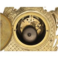 Mecanismo de cuerda y péndulo, carátula circular e índices romanos y arábigos con inscripción "GAUDEFROY / GRAMBLY"