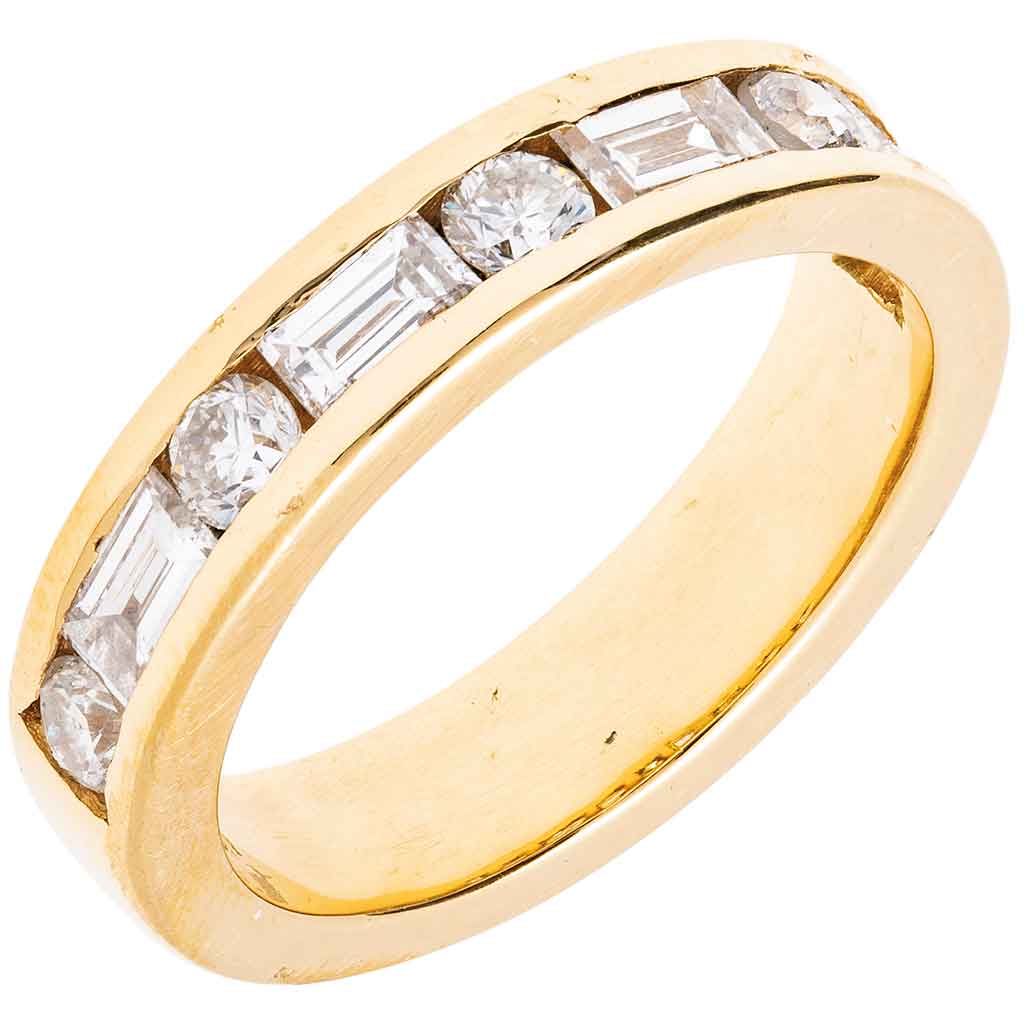 Subasta 1158, Lote # 118 MEDIA CHURUMBELA CON DIAMANTES EN ORO AMARILLO DE 18K Peso: 6.1 g. Talla: 6 Diamantes corte baguette ~0.50 ct Diamantes corte brillante y antiguo ~0.25 ct (uno presenta faltante) Estimado $18,000-22,000