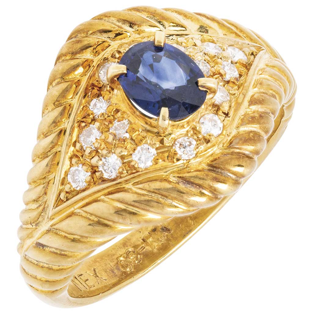 Subasta 1158, Lote # 127 ANILLO CON ZAFIRO Y DIAMANTES EN ORO AMARILLO DE 18K Peso: 5.0 g. Talla: 5 1/2 1 Zafiro corte oval ~0.44 ct Diamantes corte brillante ~0.18 ct Estimado $8,000-12,000