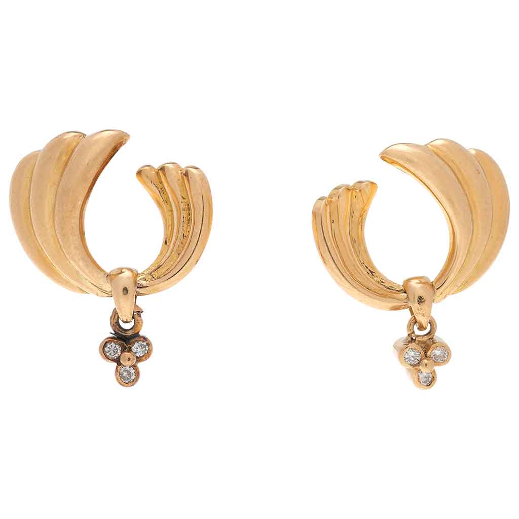 Subasta 1158, Lote # 154 PAR DE ARETES CON DIAMANTES EN ORO AMARILLO DE 14K Poste y contra. Peso: 6.4 g. Tamaño: 1.9 x 1.6 cm aprox. Diamantes corte brillante ~0.06 ct Estimado $6,000-8,000