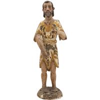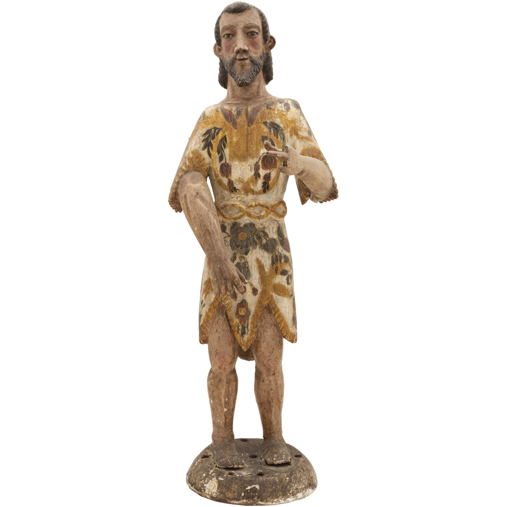 Talla en madera encarnada, dorada y policromada con ojos de vidrio