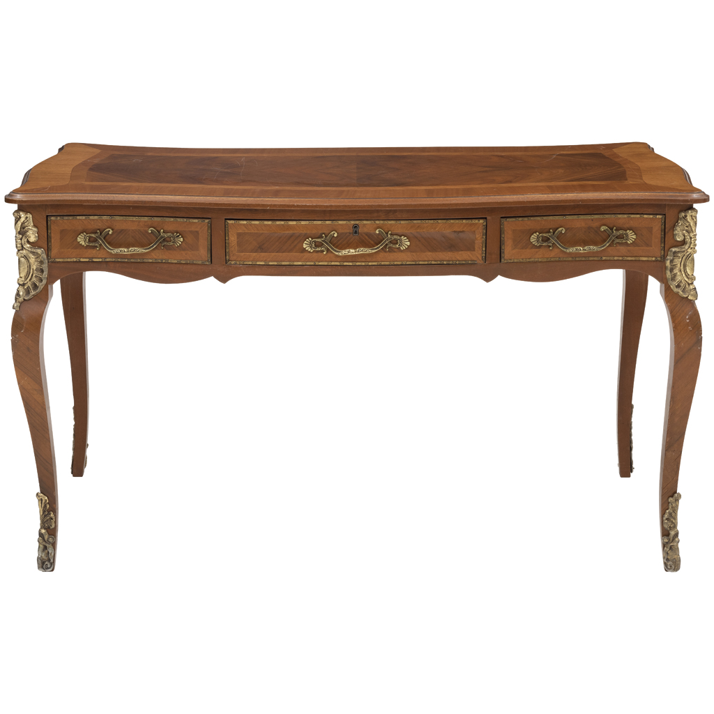 Elaborado en madera enchapada con aplicaciones de bronce dorado