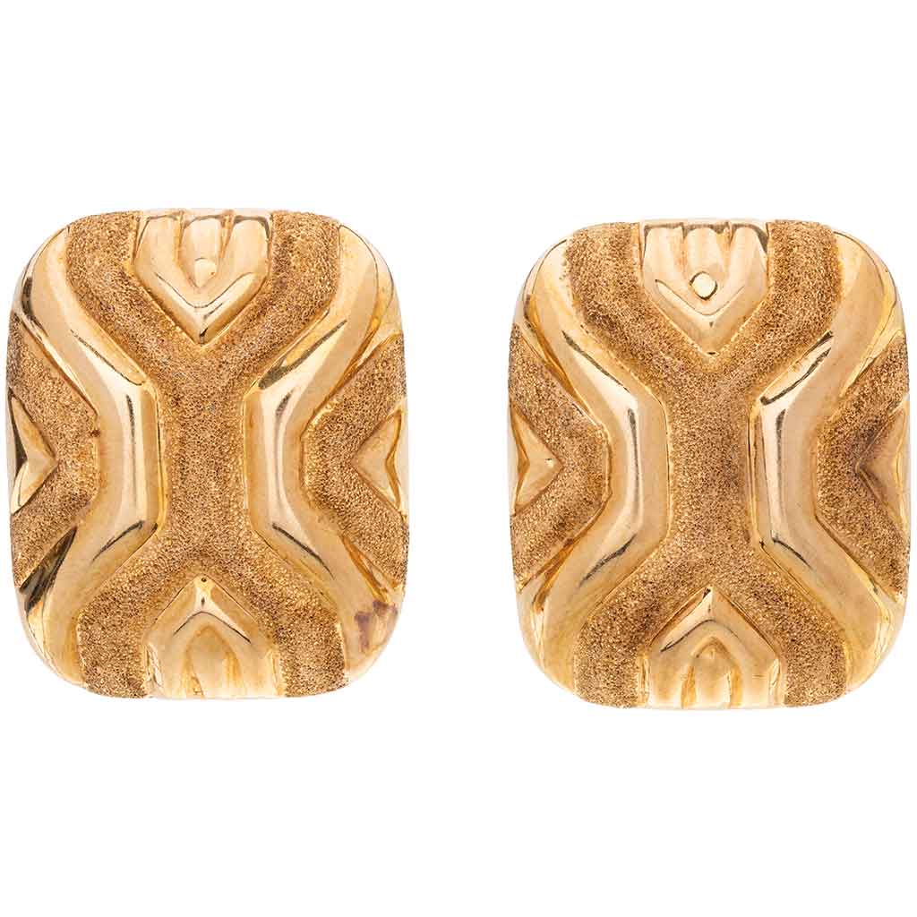 Subasta 1158, Lote # 117 PAR DE ARETES EN ORO AMARILLO DE 14K Poste y raqueta. Peso: 11.8 g. Tamaño: 3.2 x 2.6 cm aprox. Estimado $7,000-10,000