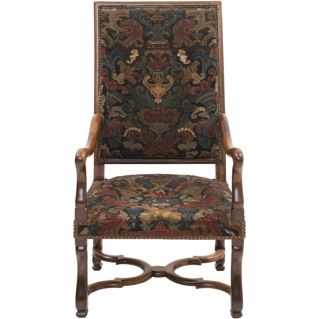 Elaborado en madera tallada con tapicería floral acojinada y bordada tipo PETIT POINT