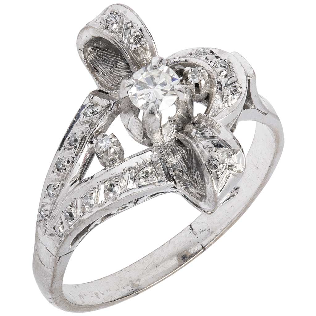 Subasta 1158, Lote # 188 ANILLO CON DIAMANTES EN PLATA PALADIO Peso: 4.4 g. Talla: 9 Diamantes corte 8x8 y suizo ~0.20 ct Estimado $5,000-6,000