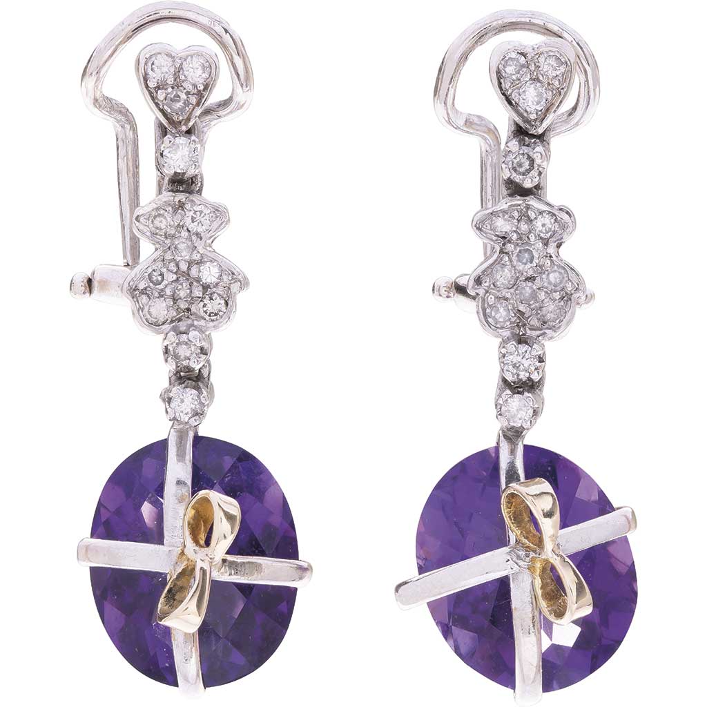 PAR DE ARETES CON AMATISTAS Y DIAMANTES EN PLATA PALADIO