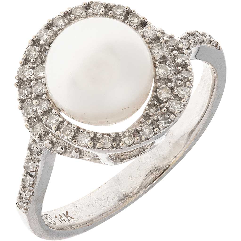 Subasta 1158, Lote # 161 ANILLO CON PERLA Y DIAMANTES EN ORO BLANCO DE 14K Peso: 3.8 g. Talla: 7 1/4 1 Perla semiesférica color blanco: 7.8 mm aprox. Diamantes corte 8x8 ~0.35 ct Estimado $7,000-8,000