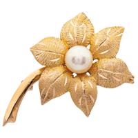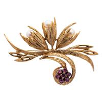 Prendedor con perlas y simulantes. Alfiler y seguro. Tamaño: 5.6 x 4.1 cm aprox.