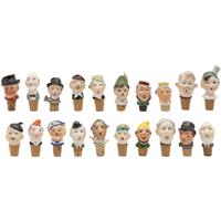 Elaborados en percelana policromada y corcho a manera de bustos de personajes