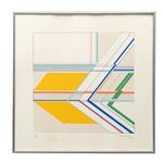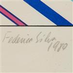 Subasta 1245T, Lote # 260 FEDERICO SILVA (Ciudad de México, 1923 - ) Sin título Firmada y fechada 1980 Serigrafía 29 / 100 Enmarcada. Con dedicatoria. Federico Silva, conocido principalmente por su importante trayectoria como escultor demuestra en esta pieza que a partir de 1960 inicia su experimentación, en el arte cinético y la serigrafía con objetos 'solares' , prismas, lentes de fresnel, espejos, imanes, rayos láser y diferentes cuerpos suspendidos en el espacio. Se puede apreciar en sus serigrafías la visión arquitectónica y de diferentes puntos de vista sobre un solo plano bidimensional, gracias a sus experimentaciones previas. Los tirajes realizados durante la época de 1980 a 1983 fueron realizados mientras era miembro del Laboratorio de Experimentación de Arte Urbano. Fuente consultada: sitio oficial de la Academia de Artes en México www.academiadeartes.org.mx 52 x 52 cm Estimado $6,000-8,000