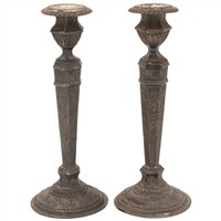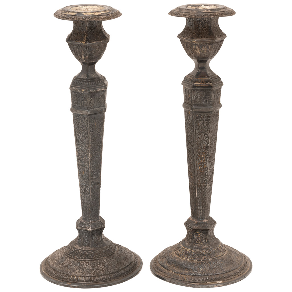 Marcados DERBY SP CO (DERBY SILVER PLATE Co), metal plateado, numerados 2547; decorados con relieves a manera de acantos y personajes