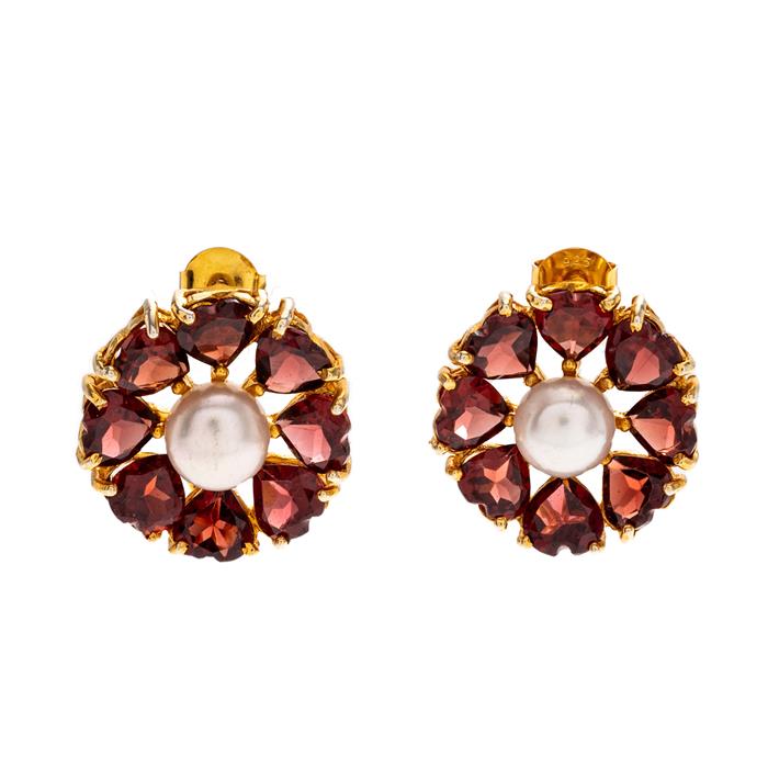 Subasta 1243T, Lote # 331 Par de aretes con granates y perlas en plata .925 dorada. Peso: 9.3 g. Estimado $1,800-2,500