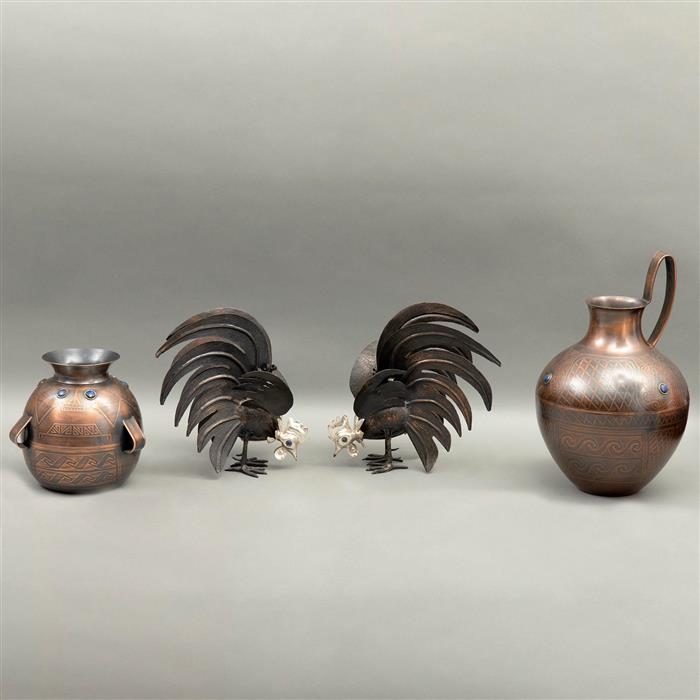 Lámina de cobre y metal plateado, con aplicaciones de lapislázuli