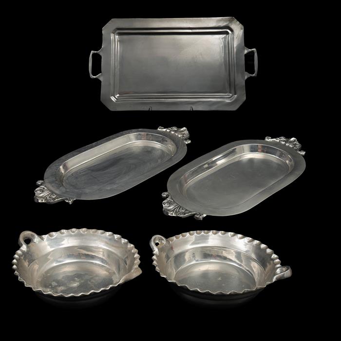 Consta de: 2 cacerolas, 2 platones ovales y charola de servicio