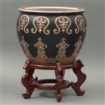 Decoración orgánica y floral en color café y dorado sobre fondo negro