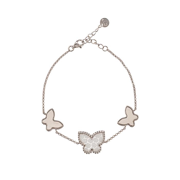 Subasta 1245T, Lote # 324 Pulsera con cristal de murano en plata con rodio. Diseño de mariposas- Peso: 6.2 g. Estimado $800-1,500