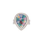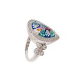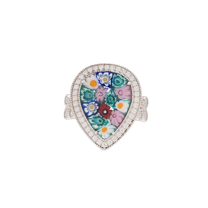Anillo forma gota con cristal de murano en plata y rodio.