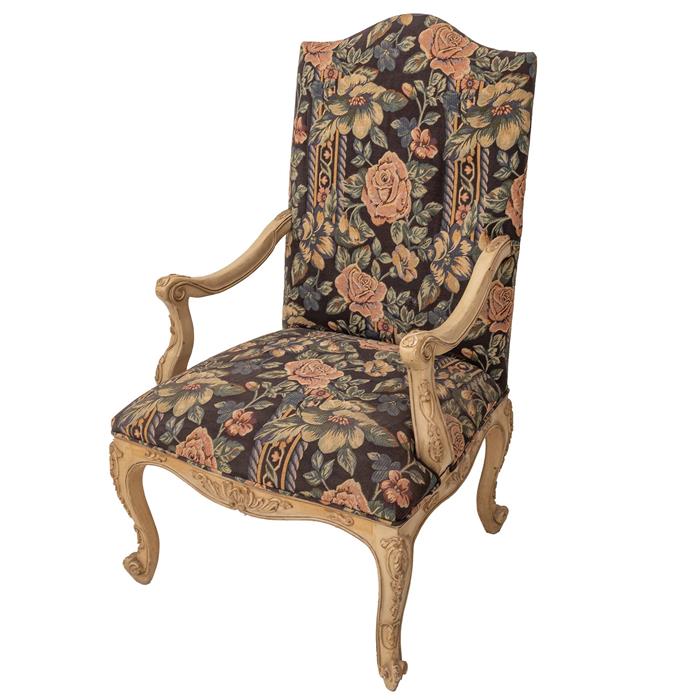 Elaborado en maderacon acojinado y tapizado de diseño floral